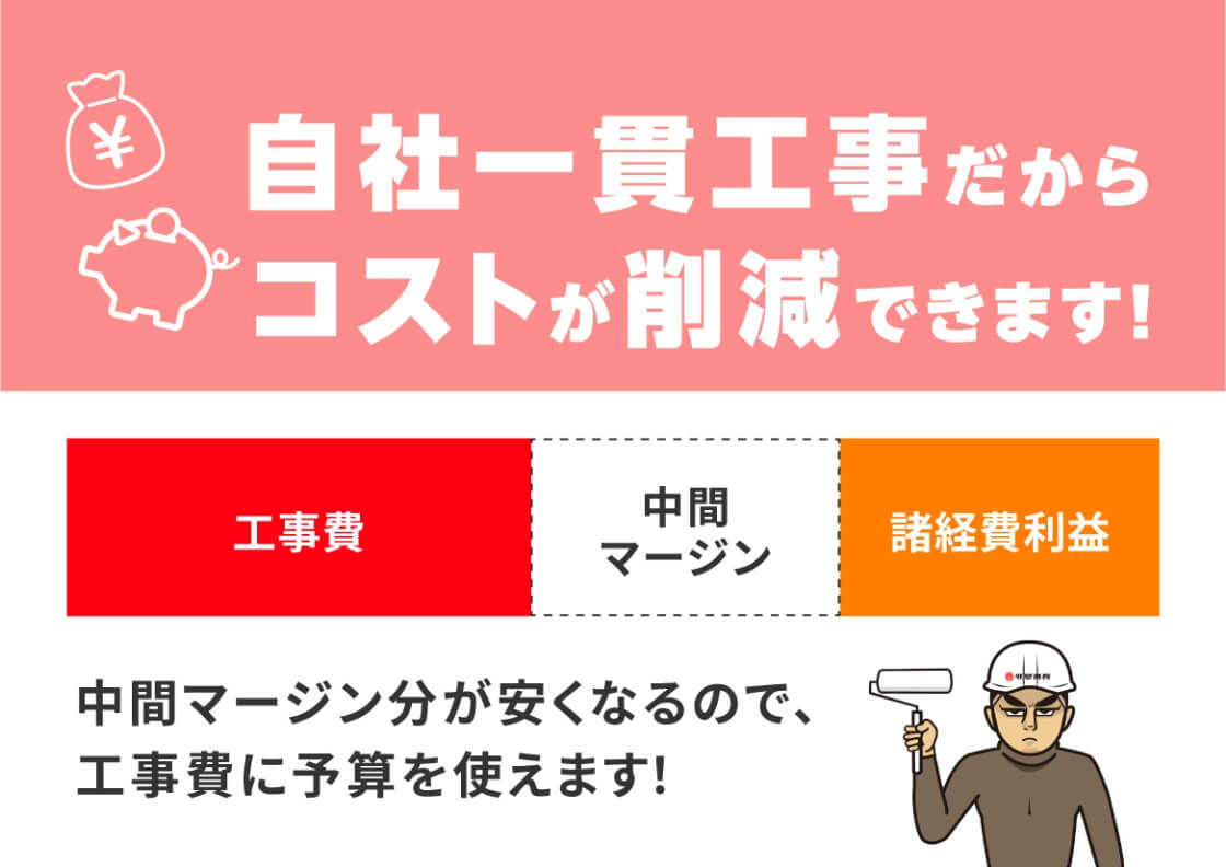 業者を挟まないからこそ、中間マージンは発生しません。そのため、お客様にご負担がかかる無駄なコストの削減に成功しております。