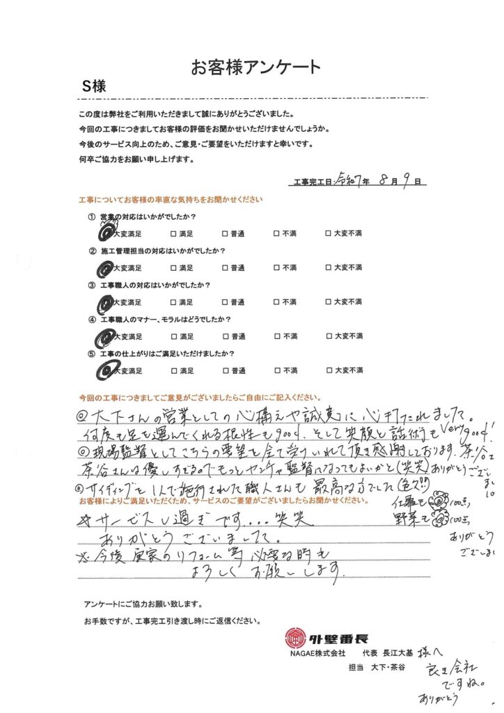 ◎現場監督としてこちらの要望も全て受けいれて頂き感謝しております。茶谷さんは優しすぎるのでもっとヤンチャな監督になってもよいかと(笑笑)ありがとうございました