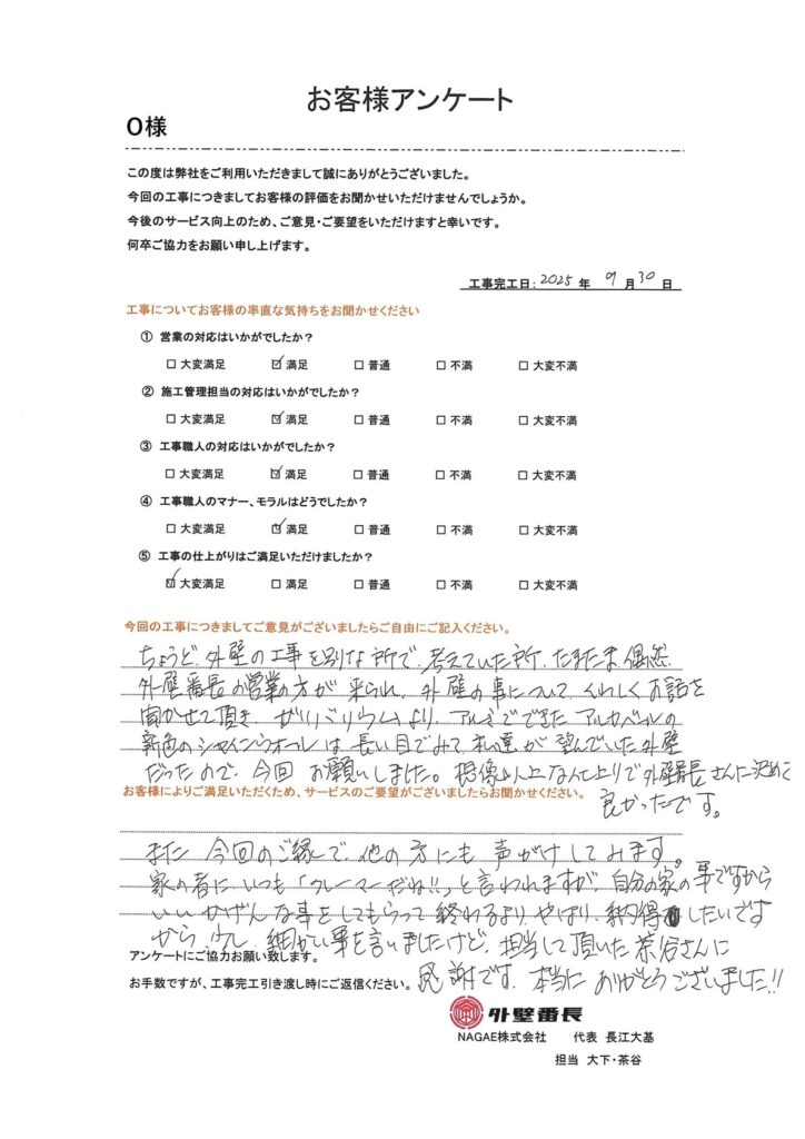 想像以上な仕上がりで外壁番長さんに決めて良かったです。